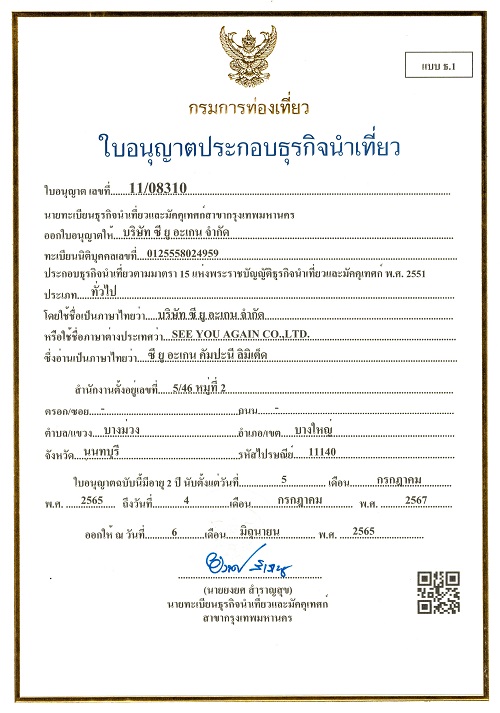 ใบอนุญาตประกอบธุรกิจนำเที่ยว บริษัทซี ยู อะเกน จำกัด เลขที่ 11/08310