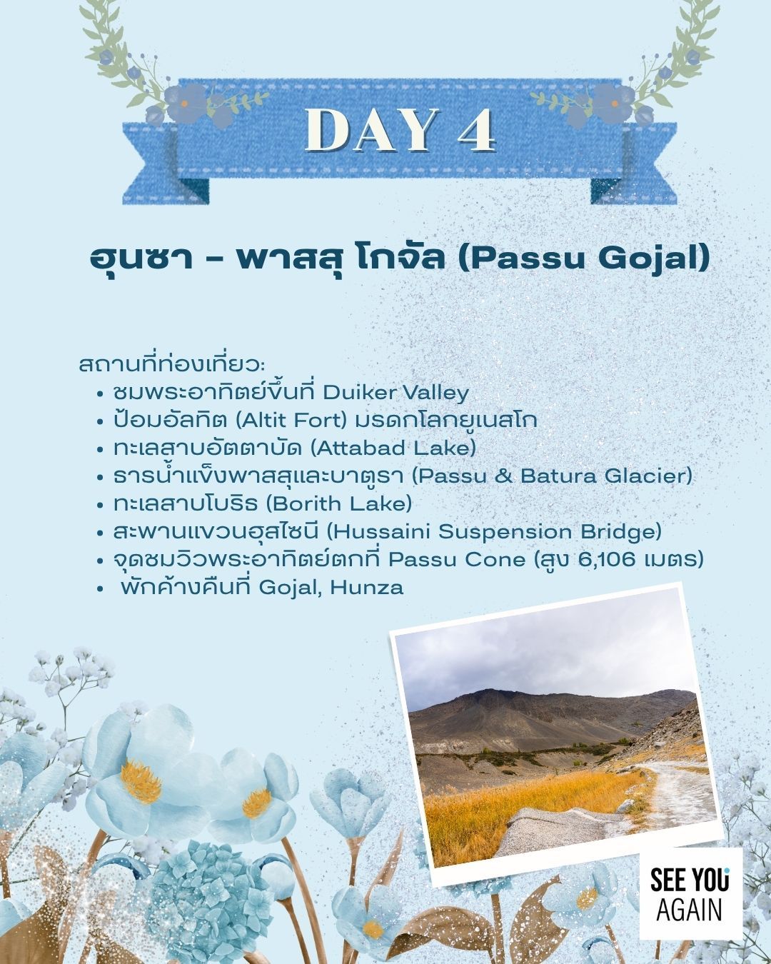 ทัวร์ปากีสถาน, เที่ยวปากีสถาน, ปากีสถานเที่ยวไหนดี, เที่ยวสการ์ดู, ฮุนซ่าวัลเลย์, หุบเขาฮุนซ่า, เทือกเขาหิมาลัย, เที่ยวปากีสถานแบบส่วนตัว, ทัวร์ส่วนตัวปากีสถาน, ทัวร์หรูปากีสถาน, รถตู้พาเที่ยวปากีสถาน, รถตู้พร้อมคนขับปากีสถาน, รถตู้วีไอพีปากีสถาน, บริการเช่ารถตู้พร้อมคนขับ, ทัวร์ชมวิวหิมาลัย, ทัวร์ธรรมชาติปากีสถาน, ทัวร์ปากีสถานราคาพิเศษ, SeeYouAgain, SeeYouAgainEurope, ทัวร์ปากีสถานโดยคนไทย, PrivateTourPakistan, PakistanPrivateVan, PakistanTravel, HunzaValley, SkarduTrip, PakistanMountainTrip