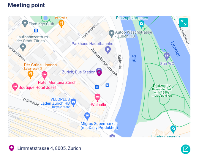 - แสดงตั๋วบนมือถือกับไกด์ที่จุดนัดพบหรือสำนักงานตั๋ว (อาคารสีขาว) ซึ่งมีชื่อว่า “ทัวร์ที่ดีที่สุดของสวิตเซอร์แลนด์” หรือ “ทัวร์เมือง & ท่องเที่ยว”