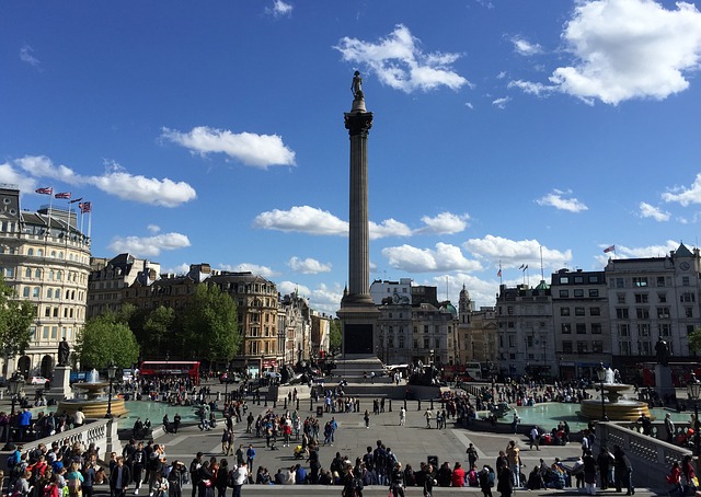 พาท่านชมจัตุรัสสำคัญของลอนดอน Trafalgar Square ตัวอนุสาวรรีย์สร้างขึ้นเพื่อฉลองชัยชนะของ Battle of Trafalgar ที่กองทับเรืออังกฤษเอาชนะกองทัพเรือของฝรั่งเศสยุคนโปเลียนที่แหลม Trafalgar ในประเทศสเปน จุดนี้เป็นสถานที่นัดหมายของชาวลอนดอน ด้านหลังของจัตุรัสมีสิ่งที่น่าสนใจคือ National Gallery พิพิธภัณฑ์ศิลปะแห่งชาติอังกฤษที่มีงานศิลปะของโลกอยู่มากมาย